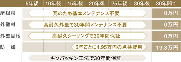 高耐久仕様により30年間でメンテナンス費用を約19.8万円(税別)に抑えることが可能です。